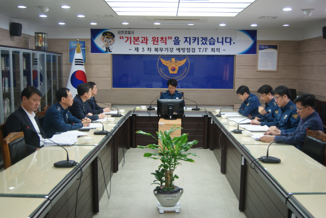 | 김천경찰서(서장 김영수)는, 3월 28일(화) 경찰서 2층 소회의실에서 경찰서장, 각 과장 등 9명이 참여한 가운데“제3차 복무기강 예방점검 T/F”회의를 개최하였다.