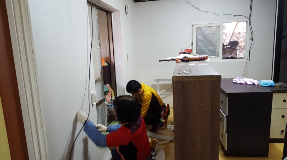 | 3월28일, 29일 이틀 동안 「법사랑 김천구미 연합회」(김천지구 회장 최동원)에서는 대곡동 저소득 2가구에 도배, 장판 봉사를 시행하였다.