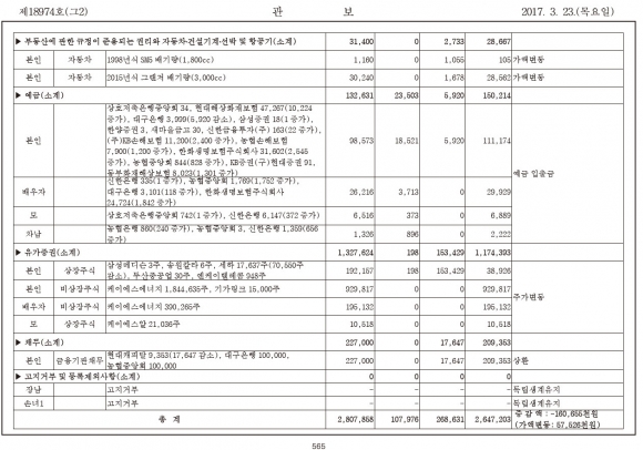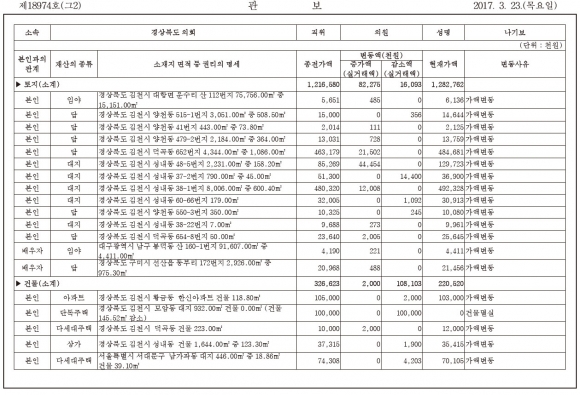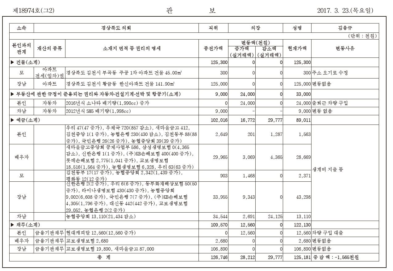 | 김응규 경상북도의회 의장 재산변동사항 |
