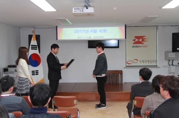 | 김천소방서(서장 백남명)는 3일 김천우체국 2층 회의실에서 김천우체국 집배원 54명에 대하여『미리알리오 명예119요원』역량강화 교육을 실시했다.