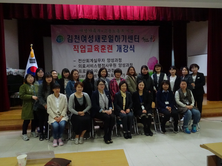 | 김천시 평생교육원 (원장 김금숙)에서 운영하는 여성새로일하기센터에서는 4월 3일(월) 평생교육원 3층 강당에서 4개과정 교육생 80명이 참석한 가운데 직업교육훈련 개강식을 개최하였다.