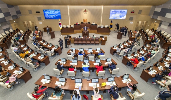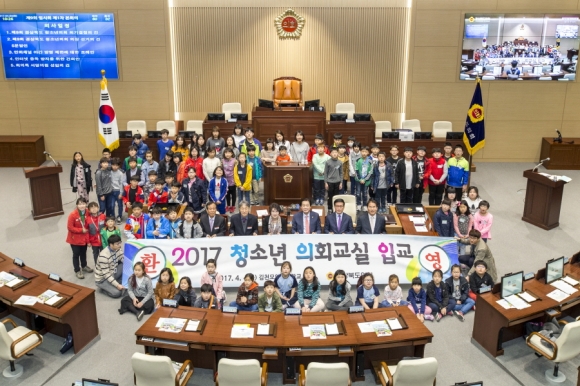 | 경상북도의회(의장 김응규)는 4월 4일(화), 도의회 본회의장에서 김천모암 초등학교 학생 77명을 대상으로 제9회 청소년 의회교실을 열었다.