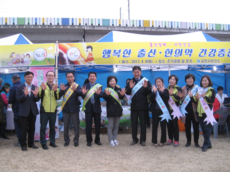 | 김천시(시장 박보생)는 4월 4일(화) 오후 6시 조각공원 둔치에서 “아이낳고 키우기 좋은 행복도시 김천만들기”를 위하여 시민들을 대상으로 출산장려 홍보부스 운영 및 캠페인을 전개하였다.