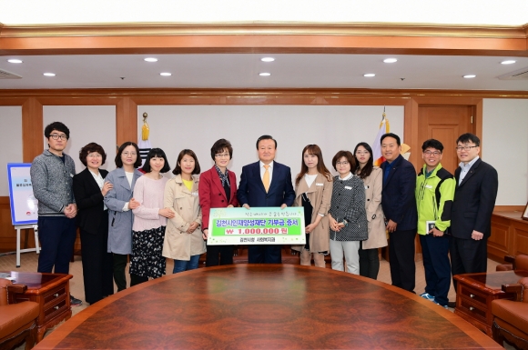 | 김천의 교육발전과 글로벌 인재육성을 위해 김천시청 사회복지과(과장 김경희) 직원 일동이 김천시인재양성재단(이사장 박보생)에 장학기금 일백만원을 기탁했다.