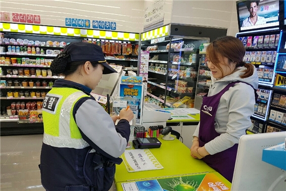 이번 홍보는 편의점 업주와 종업원 상대로 최근에 발생한 편의점 강·절도사건 사례와 상황발생시 대처 및 신고요령을 알리고 또한 한달음 시스템 작동유무 점검하고 심야시간대 여성1인 근무를 지양할 수 있도록 당부하였다. |