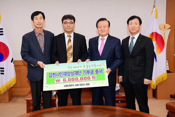 지난 5일 농업회사법인 (주)사바하 이창윤 대표이사는 “김천에서 사업체를 운영하면서 김천시민들로부터 많은 도움을 받았으며 감사한 마음을 지역사회에 환원하고자 2017년 4월부터 2018년 3월까지 김천시인재양성재단에 매월 50만원씩 1년 동안 자동이체하여 육백만원을 기탁하기로 했다”고 말했다.