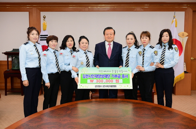 | 김천의 교육발전과 글로벌 인재육성을 위해 김천경찰서 김천시여성자율방범대(대장 박경자)에서 김천시인재양성재단(이사장 박보생)에 장학기금 삼십만원을 기탁했다.