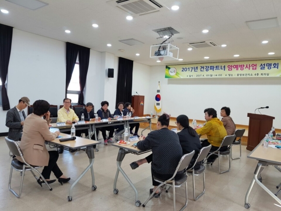 | 김천시 중앙보건지소가 국민 사망률 1위인 암 예방과 조기 발견·치료를 위해 우리마을 자원봉사자와 함께 하는‘건강파트너 암예방사업’설명회를 4월 10일 오후2시에 열였다.