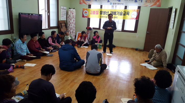 올해 성공적인 벼농사를 위한 이번 특별교육은 벼농사 주산지역인 아포, 개령, 어모 등의 벼 재배 농가를 대상으로 마을회관에서 평소 영농과정에서의 애로사항을 질의 응답방식으로 진행하였으며, 주 교육내용은 쌀값하락 극복을 위한 3저 3고 운동의 정책방향과 소비자 선호도가 높은 품종설명, 종자소독 및 못자리관리 요령, 농약안전사용 방법, 생산비 절감 병해충 방제를 통한 고품질 쌀 생산 재배기술로 진행하였다. 전년도 영농과정에서 문제가 되었던 종자소독, 육묘관리 등 실패사례 중심의 교육을 통해 볍씨 파종에서부터 실패요인을 제거하여 경영비 절감을 통한 지역 명품쌀 생산에 동참하는 공감대형성의 토대를 마련하였다.