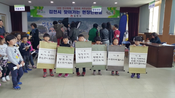 김천시 관계자는 “「찾아가는 현장민원실」은 사소한 불편사항을 해결하기 위해 시내까지 찾아가기 어려워 참고 계신 분들에게 도움을 드리고자 운영하고 있으며 앞으로도 주민여러분의 욕구에 한발짝 다가가는 서비스를 제공하기 위해 노력하겠다.”고 하였다.