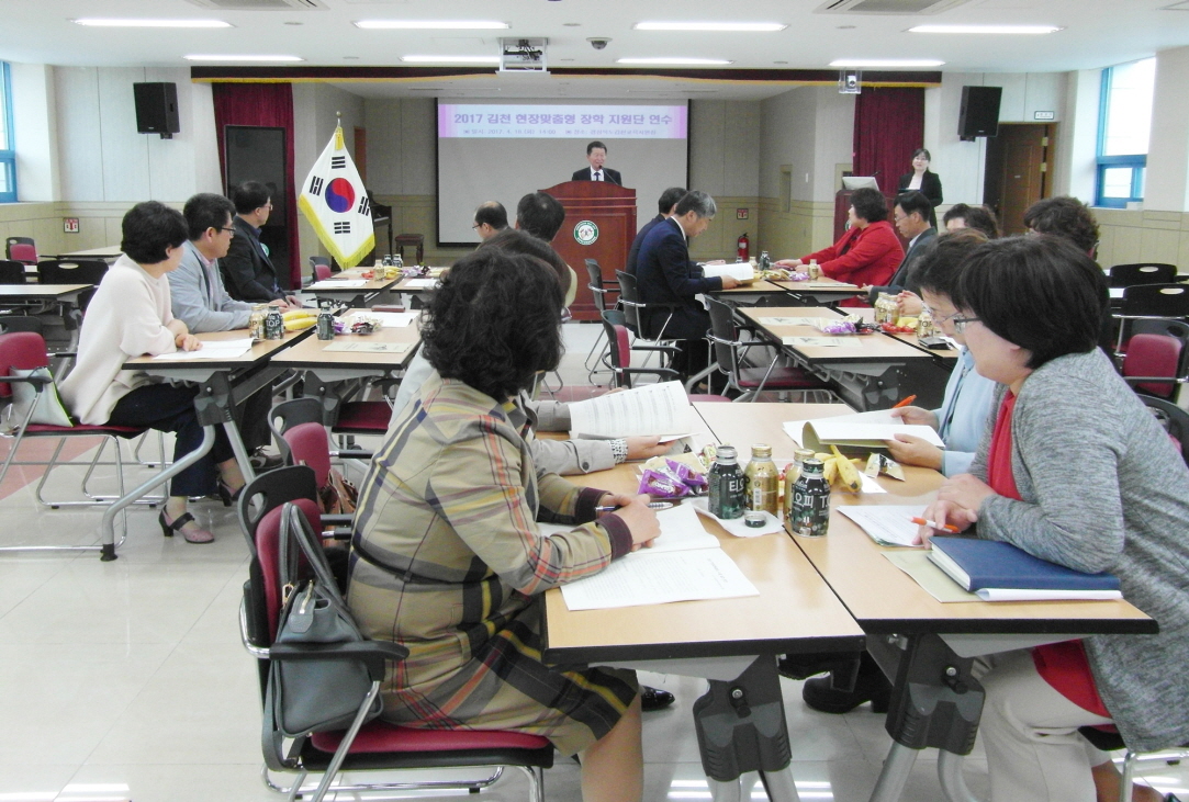 | 경상북도김천교육지원청(교육장 장태덕)은 4월 18일(화) 3층 대회의실에서 2017학년도 김천 현장맞춤형 장학지원단 연수회를 개최하였다.