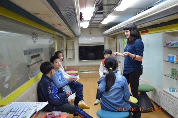 대구경북영어마을에서는 원어민 교사 2명, 한국인 교사 1명, 운전기사 1명을 지원하여 버스 내 체험활동과 교실체험활동을 병행하여 수업을 진행하였으며 체험과 놀이 등 학생활동 중심 수업으로 이루어졌다.