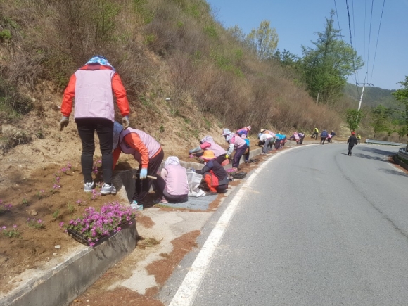 이번 작업은 부항면 생활개선회, 공무원, 지역주민 등 20여명이 참여하여 부항댐 일주도로 1㎞ 구간내 꽃잔디를 비롯하여 금계국, 벌개미취 등 야생화 8,000여본을 식재하였다.