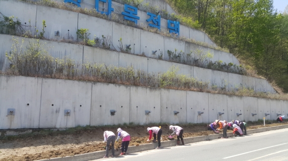 | 부항면(면장 권용섭)은 지난 19일부터 20일까지 2일간 부항댐 일주도로변 꽃길 조성에 나섰다.