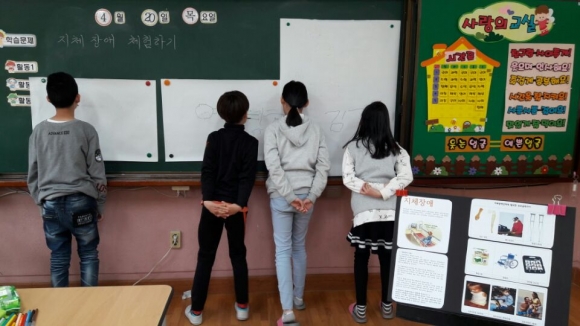 | 이렇게 한 주간의 장애이해교육을 실시함으로써 장애를 가진 친구의 어려움을 이해하며 함께하는 마음을 갖는 계기가 되었다.