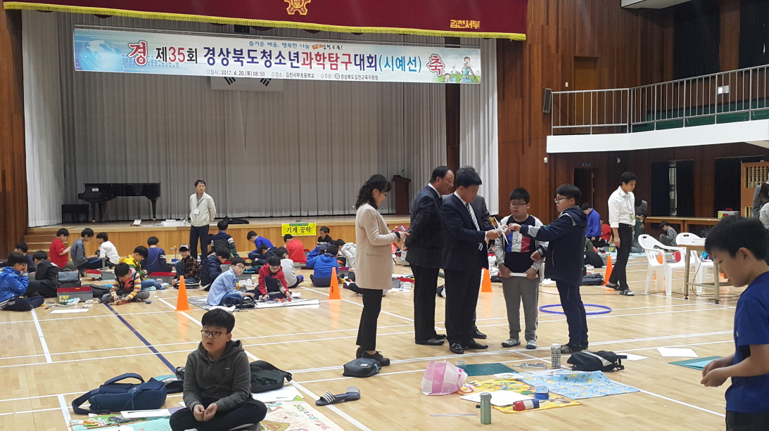 | 경상북도김천교육지원청(교육장 장태덕)은 2017년 4월 20일(목) 오전 9시부터 김천발명교육센터와 김천서부초등학교에서 김천시 관내 초, 중 43개교 학생들이 참가한 가운데 제35회 경상북도 청소년과학탐구대회 김천시 예선대회를 개최했다. 기계공학, 항공우주, 융합과학, 과학토론 4개 종목별 학교예선대회를 거쳐 선발된 관내 초․중학교 대표학생들 311명은 학교의 명예를 걸고 열띤 경쟁을 펼쳤다.