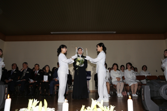 | ‘나이팅게일 선서식’은 간호학과 학생들이 병원 임상실습에 앞서 촛불의식을 통해 희생과 봉사 정신을 되새기고, 나이팅게일의 숭고한 정신을 이어받아 전문 간호인으로 책임과 의무를 다할 것을 다짐하는 의식이다.