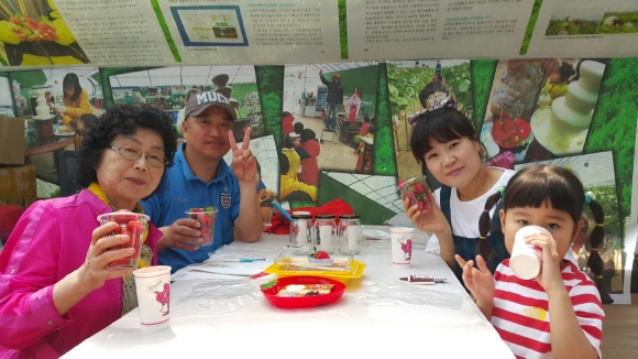 이날 행사는 문경보석딸기농장에 도착하여, 딸기 수확 체험뿐만 아니라 딸기를 이용한 체험 프로그램으로 딸기 청 만들기, 딸기초코퐁듀 등 다양한 프로그램을 통해 손자녀가 자연스럽게 소통하는 시간을 가졌다.