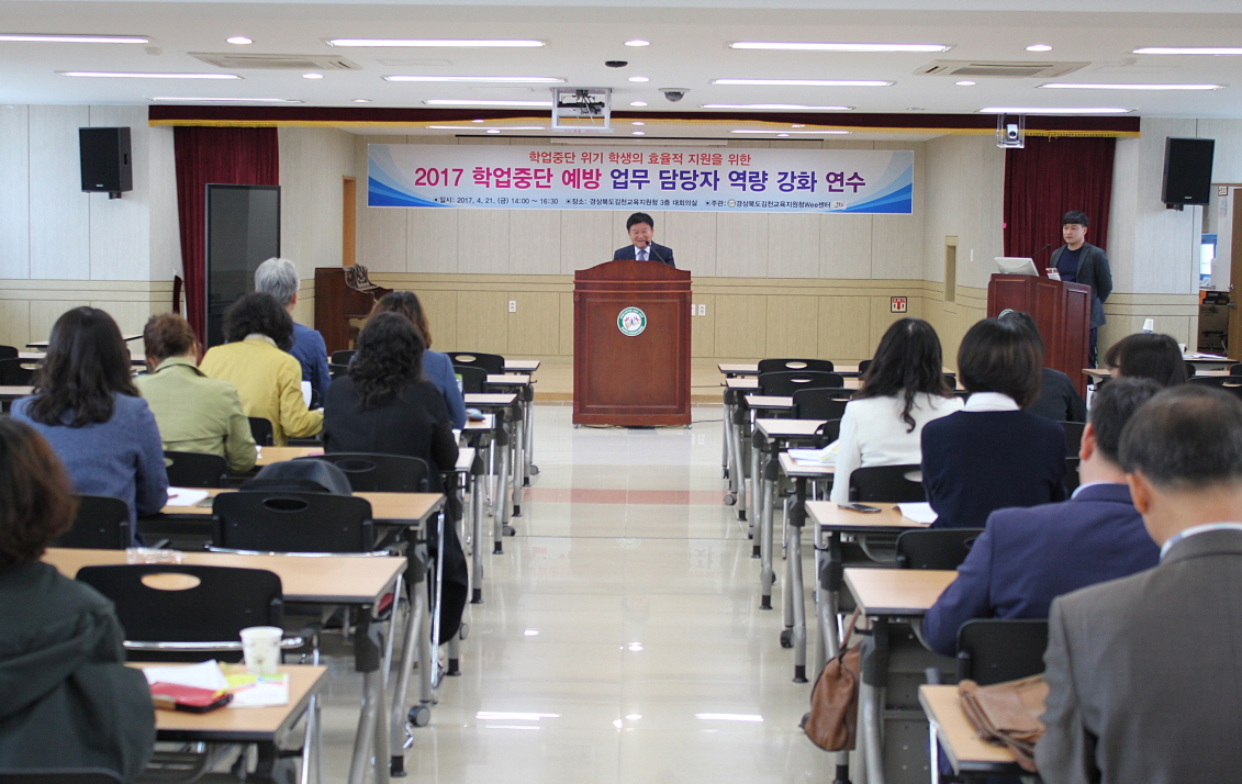 경상북도김천교육지원청(교육장 장태덕) Wee센터는 지난 21일 관내 초, 중, 고등학교 학업중단 예방 업무 담당자 60여명을 대상으로 김천교육지원청 3층 대회의실에서 2017 학업중단 예방 업무 담당자 역량 강화 연수를 운영해 큰 호응을 얻었다고 밝혔다.