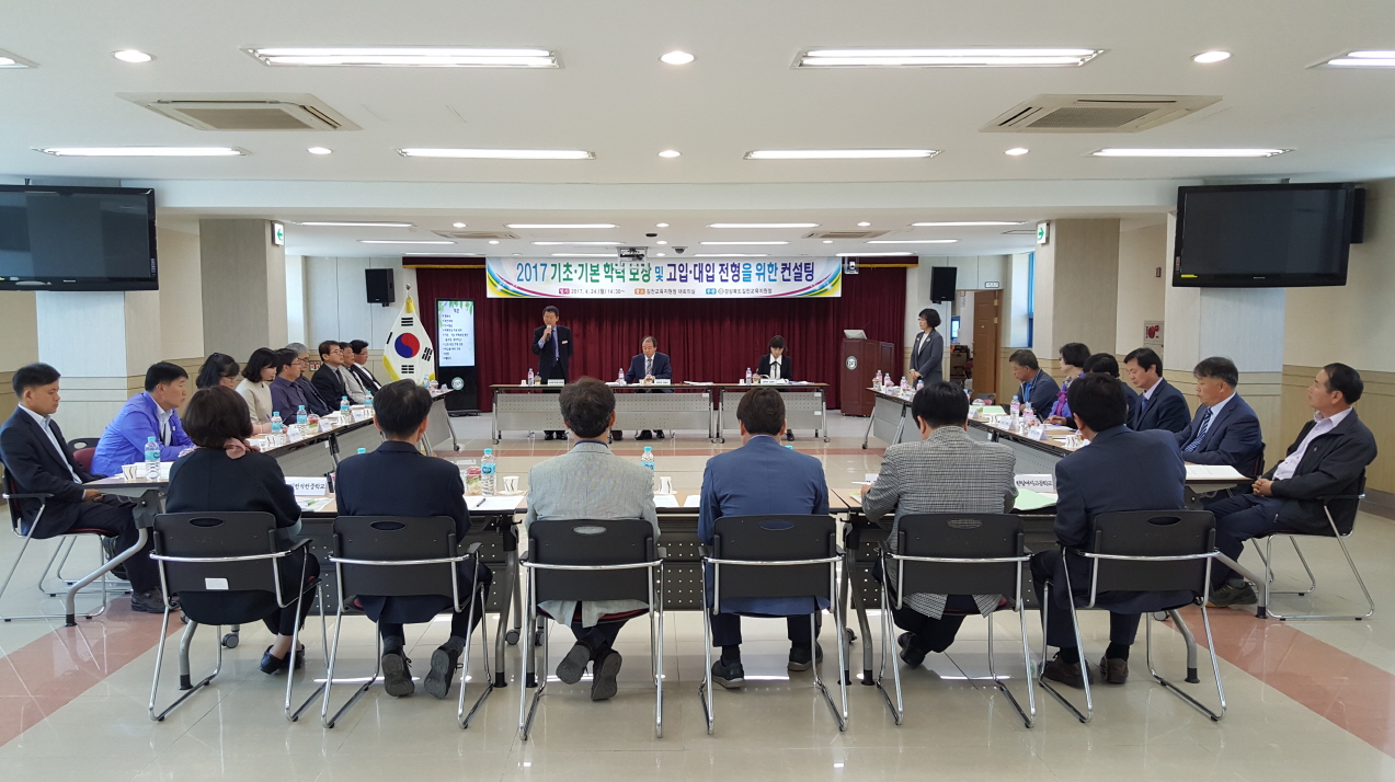 | 경상북도김천교육지원청(교육장 장태덕)은 4월 24일 관내 중․고등학교 교감 25명이 참석한 가운데, 2017학년도 기초․기본 학력보장 및 고입․대입 전형 안내를 위한 컨설팅을 실시했다.
