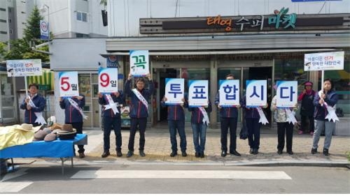 | 김천시선거관리위원회는 제19대 대통령선거를 앞두고 4월 25일 김천 5일장을 이용한 김천황금시장 일대를 돌며 『공명선거 및 투표참여 홍보』캠페인을 펼쳤다.