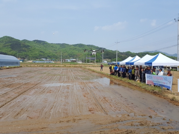철 코팅 직파는 개령면 광천리 혜성영농법인대표 김경돌 외 회원의 논 3,600평의 논에 시범으로 직파를 실시하고 농약 살포를 드론 기계를 이용하여 실시함으로 일손이 부족한 농촌의 어려움을 해결하고 농약 살포의 애로점 해결 방안이 제시되었다.