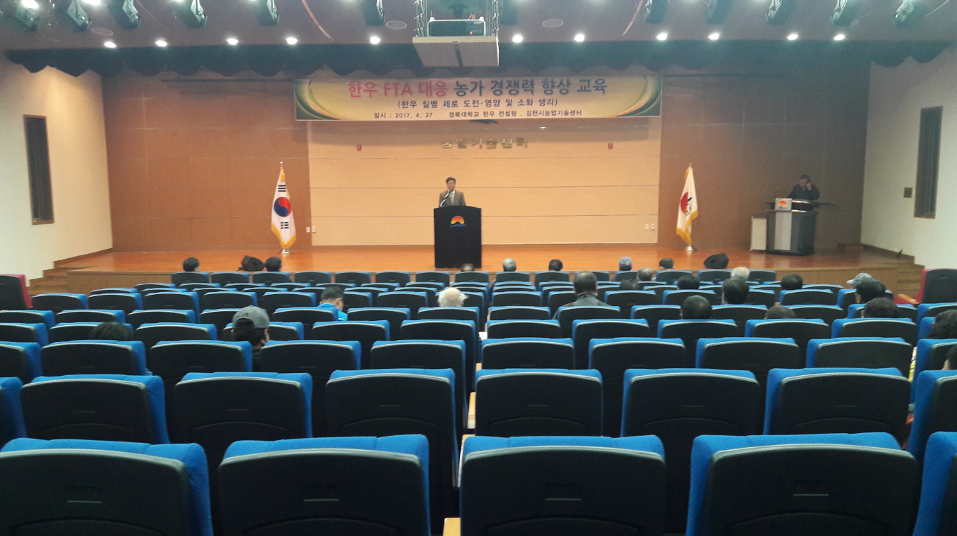 | 김천시(시장 박보생)는 고병원 AI 위기경보 단계를 “심각”에서 “경계”로 하향조정됨에 따라, 4월 27일 농업기술센터에서 컨설팅 농가 및 한우협회 회원 등 관내 한우농가 70명을 대상으로 한우농가 생산비 절감과 고급육의 안정적인 생산기반 구축을 목표로 특별교육을 실시하였다.