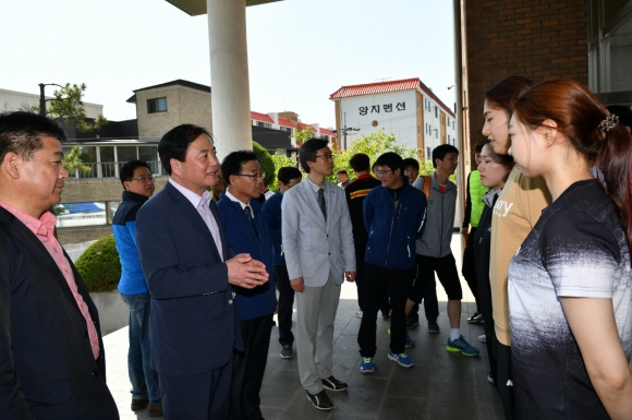배낙호 의장은 그동안 운동장에서 구슬땀을 흘리며 연습한 선수들의 손을 일일이 잡아주며“자신의 기량을 마음껏 발휘하여 필승의 각오로 스포츠 도시인 김천의 역량을 최대한 발휘해 좋은 성적을 달성 해주길 바란다”고 말했다.