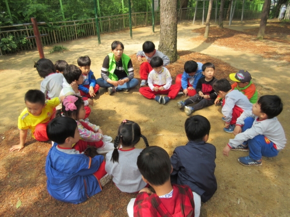 유아들도 숲에서 나뭇가지, 나뭇잎, 나무기둥 등의 자연물 놀잇감을 가지고 놀이를 하며 자연물을 직접 관찰하고 체험하면서 호기심을 자극하여 사물에 대한 관찰력을 기르고 자연현상을 깊이 있게 관찰하는 모습이었다.