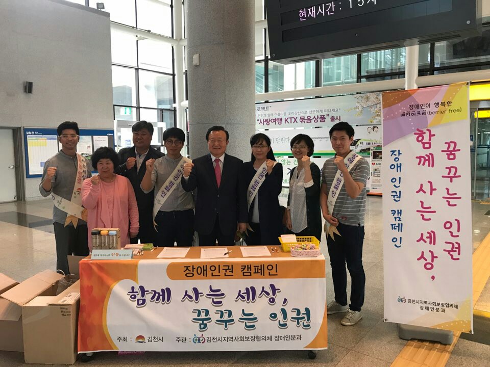 | 김천시지역사회보장협의체(위원장 박보생, 공동위원장 이기양)는 지난 12일(금) 김천역, 시외버스터미널, KTX김천구미역 앞에서 장애인권 캠페인을 실시하였다.