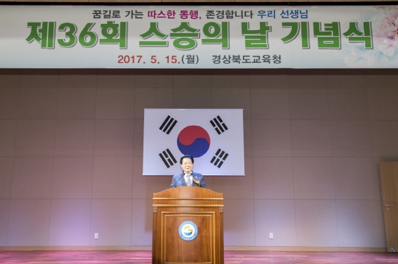 | 김응규 경상북도의회 의장은 5월 15일(월) 오전 10시 30분경, 도교육청 업무지원동 웅비관에서 개최된 「제36회 스승의 날 기념식」에 참석하여 축사를 하고 관계자들을 격려했다.