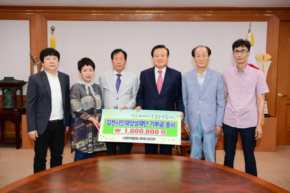 지난 15일 2층 접견실에서 (사)대한숙박업중앙회 경북지회 김천시지부 홍종기 지부장과 임원들은 “김천에서 숙박업을 하면서 김천시민들로부터 많은 도움을 받았으며, 감사한 마음을 지역사회에 환원하고자 김천시인재양성재단에 일백만원을 기탁하게 됐다”고 말했다.