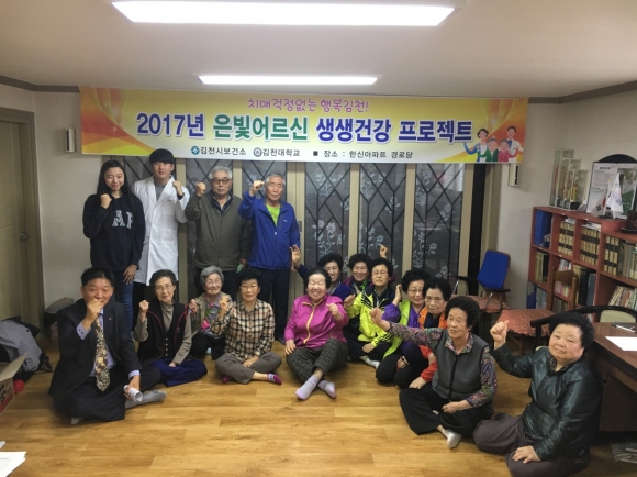 | 김천시는 동지역 경로당 어르신을 대상으로 지난 4월 25일부터 “은빛어르신 생생건강 프로젝트” 라는 주제로 김천대학교 간호학과와 연계하여 어르신들의 치매에 대한 이해와 건강한 노후를 위한 치매예방건강증진 프로그램을 운영한다.
