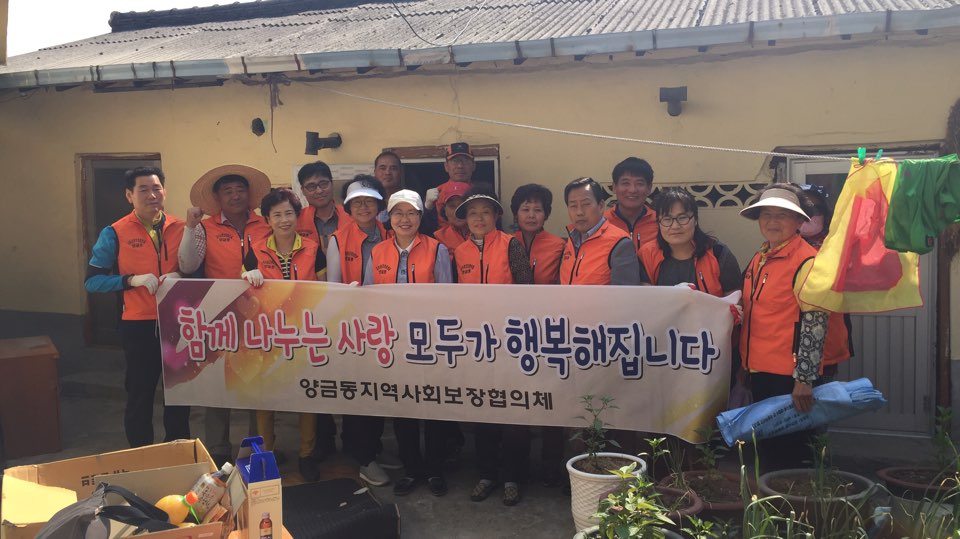 이번 사업은 양금동에서 건축년도가 오래되고 낙후되어 있는 저소득 홀몸어르신가구를 선정하여 도배 및 장판 시공, 부엌 페인트 도색, 전기공사, 창문공사, LED형광등 교체, 집안팍 청소 등 직접 위원들의 힘으로 실시하여 쾌적하고 안락한 주거환경을 제공하여 주었다.