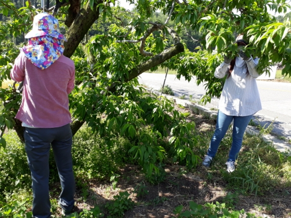농가주인 박희동씨 부인은“남편이 아파 병원에 입원하면서 복숭아 적과가 늦어 어떻게 해야 할지 일손 구하기도 어려워 울고 싶은 심정이었는데 문화예술회관에서 이렇게 도와주어 너무 고맙게 생각한다.”며 감사의 말을 전했다.