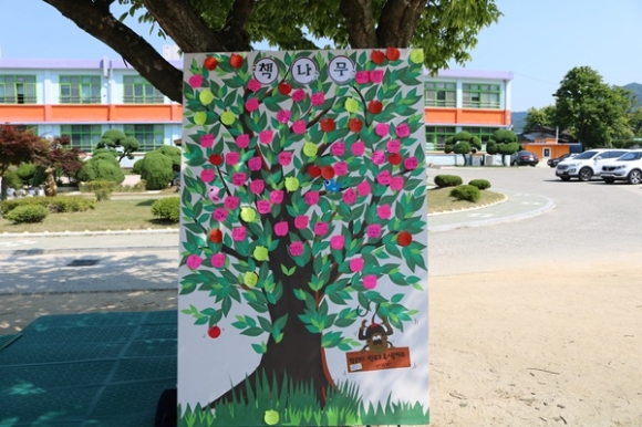 | 5월 18일은 이 독서동아리 사업의 일환으로 1+2 어울림 한마당 행사장에서 봉계초, 태화초 학부모와 학생 그리고 지역민을 대상으로 책나무 만들기를 실시하였다. 자신이 읽은 감명깊은 책을 포스트 잇에 써서 책나무에 붙여 보는 활동으로 책나무의 열매를 맺게 하는 재미있는 활동이었다. 학생들도 학부모님들도 즐겁게 참여하고 독서활동의 재미를 더해주는 계기가 되었다.