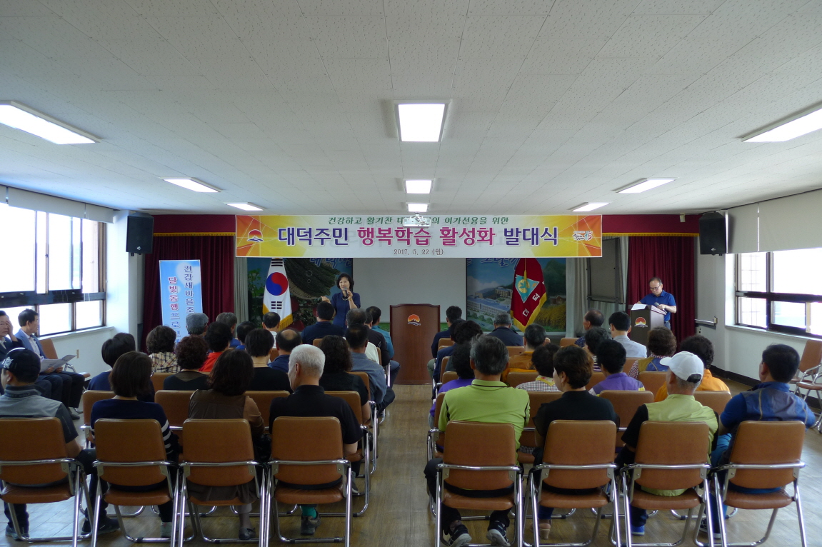 | 대덕면(면장 이은숙)에서는 지난 5월 22일 면사무소 2층 회의실에서 이장 및 행복학습에 적극적으로 참여하고 있는 주민 100여명이 참석한 가운데 행복학습 활성화 발대식 및 건강새마을 조성사업 건강리더 역량강화 교육을 개최했다.