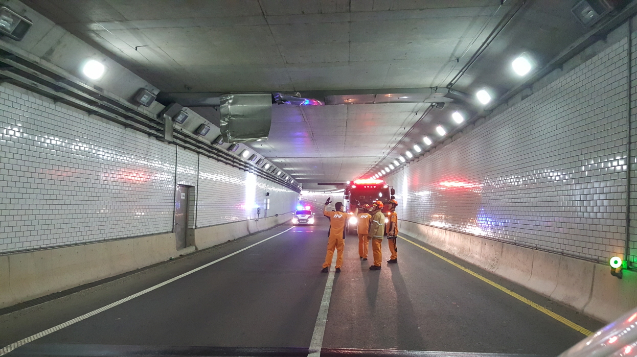 김천소방서 119구조구급센터는 터널내 천정구조물 파괴 현장에 도착하여 박리된 구조물을 안전하게 제거하고 추가 사고가 발생하지 않도록 안전조치를 취한 후 경찰 및 국토관리사무소에 사건을 인계하였다.