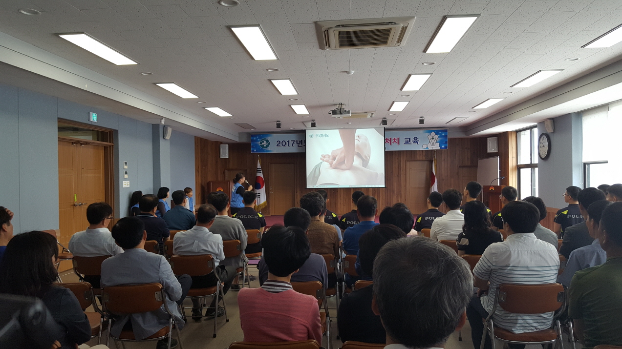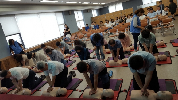 이날 교육은 응급상황 대처 능력 강화를 위한 심폐소생술 이론 및 실기, 자동제세동기 사용법 및 실기, 각종 상황응급처치교육 등 가족이나 우리 이웃에서 응급환자 발생시 대처할 수 있도록 응급의료체계의 이해와 기본인명구조술에 대해서 교육을 실시했다.