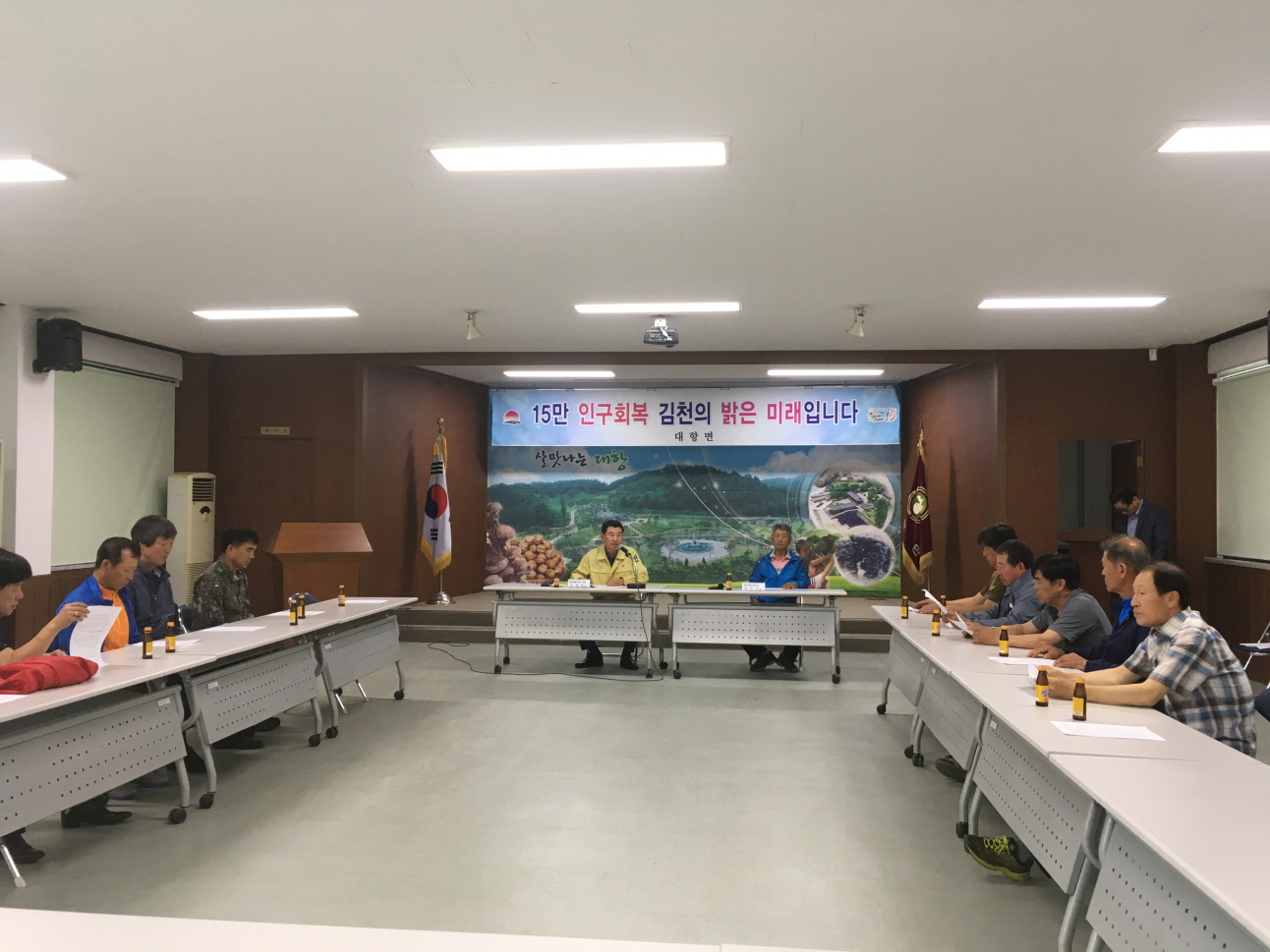 김영환 대항면장은 최근 강원도 지역 대형 산불 발생과 계속되는 건조한 날씨로 인한 산불예방 등 당면현안 및 행정사항에 대한 설명과 최근 북한의 미사일발사, 북핵 위협 등으로 국가안보가 어느 때보다 중요한 시기로 지역 안보태세를 더욱 굳건히 하여야 한다고 강조하였다. 또한 우리시 인구 15만 회복운동을 위하여 관심과 적극적인 협조를 부탁하였다.