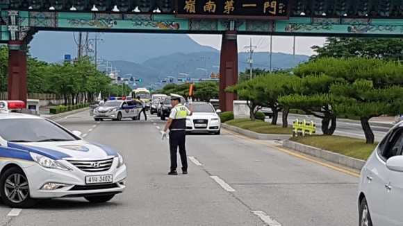 | 김천경찰서(서장 김영수)는 5월 23일(화) 다수동 영남제일문 앞에서 2차 교통사고 예방을 위한 ‘트래픽 브레이크’ 훈련을 실시하였다.