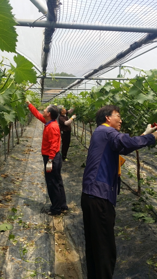 | 회계과 직원 10여명은 지난 5월 23일 감문면 은림리 마을에 건강이 좋지 못해 어려움을 겪고 있는 농가를 찾아 포도순따기 작업을 하며 구슬땀을 흘렸다.