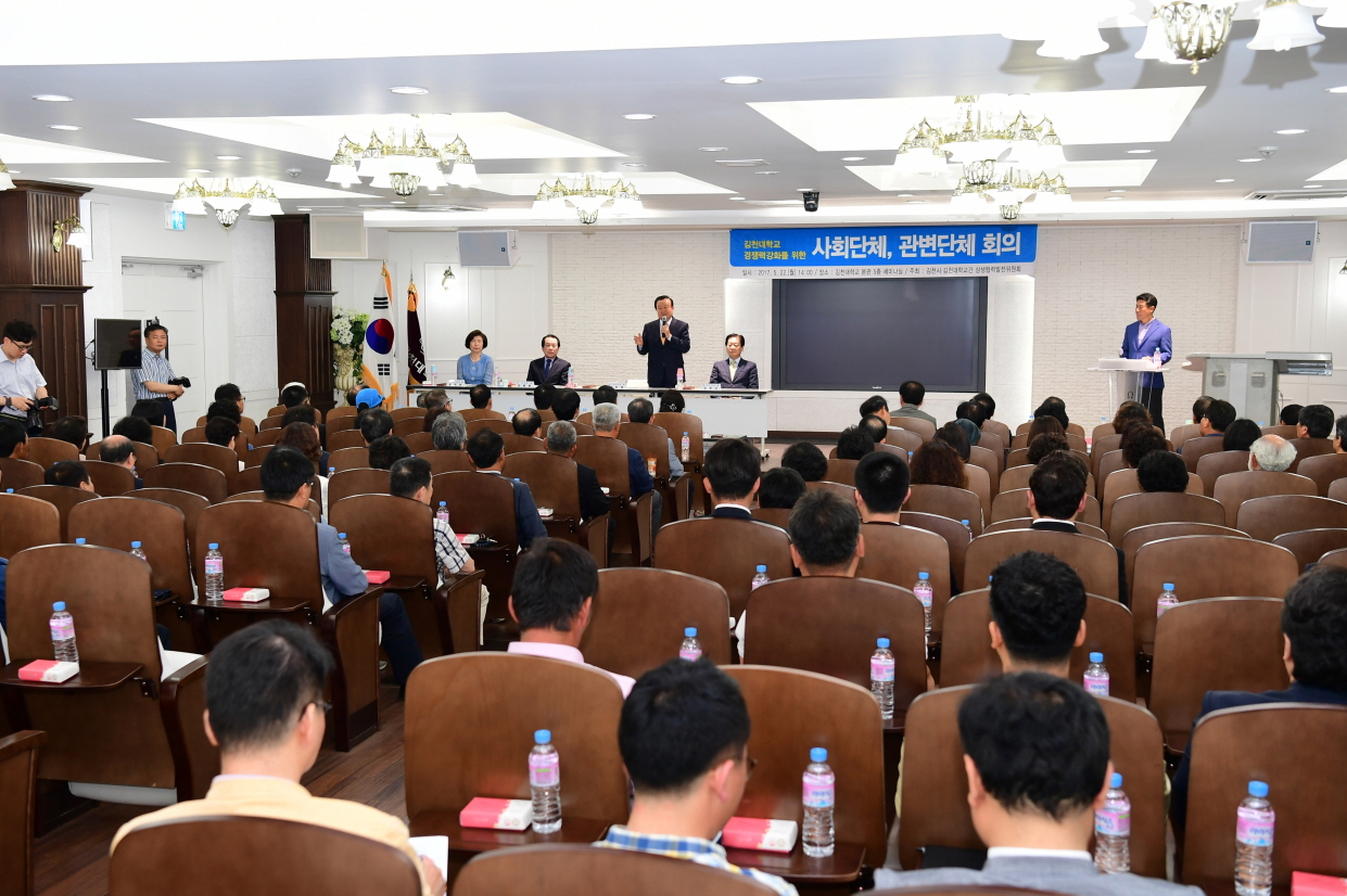 | 김천시·김천대학교간 상생협력발전위원회(위원장 김용환)는 지난 5월 22일 김천대학교 본관 5층 세미나실에서 김천대학교 경쟁력 강화 지원을 위한 관내 사회단체장 회의를 개최하였다.