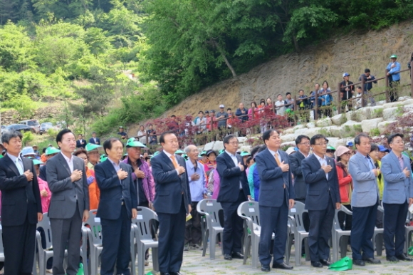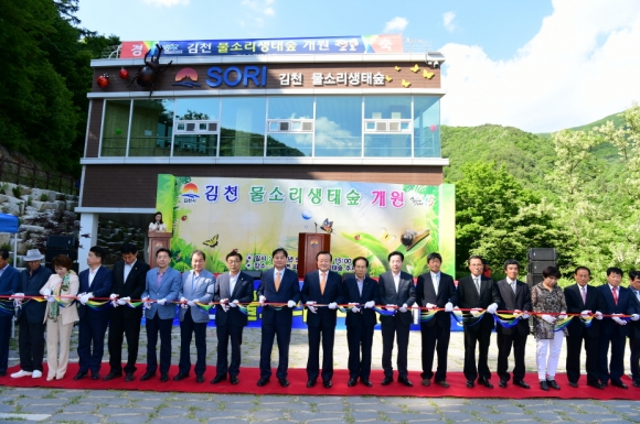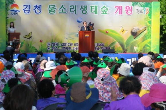 | 김천시는 지난 26일 부항면 파천리에서 '김천 물소리생태숲' 개원식을 박보생 김천시장과 배낙호의장및 지역구 시의원을 비롯한 지역주민 등 약 300명이 참석한 가운데 개최했다.