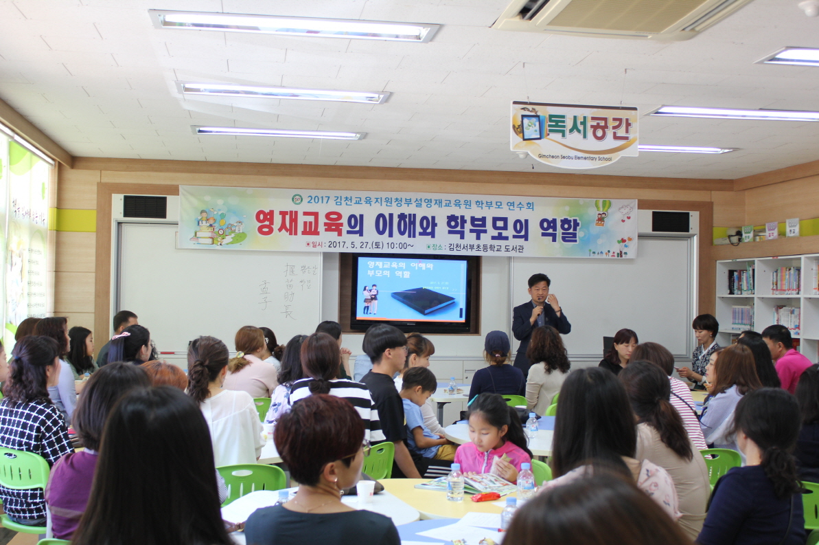 | 경상북도김천교육지원청(교육장 장태덕)은 5월 27일(토) ‘2017학년도 김천교육지원청부설영재교육원 학부모연수회 및 수업 공개의 날’ 행사를 실시하였다.