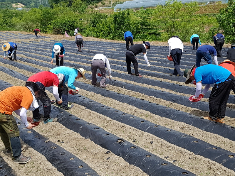 이날 봉사활동은 무더운 날씨 속에서도 합심하여 5,000㎡ 면적에 콩심기 작업을 완료하여 작게나마 농가에 힘을 보탰다.