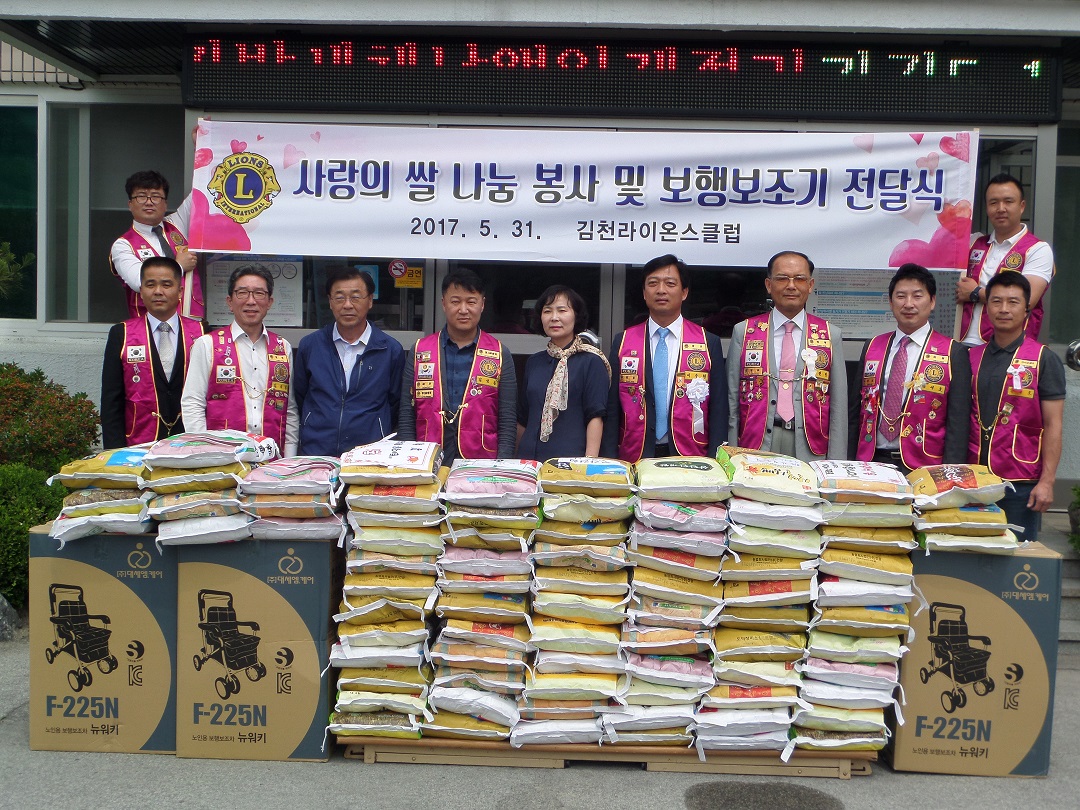 | 김천라이온스클럽(회장 이수형)은 지난 31일 대덕면에 거주하고 계시는 저소득 가구에 백미 85포와 보행보조기 3대를 전달했다.