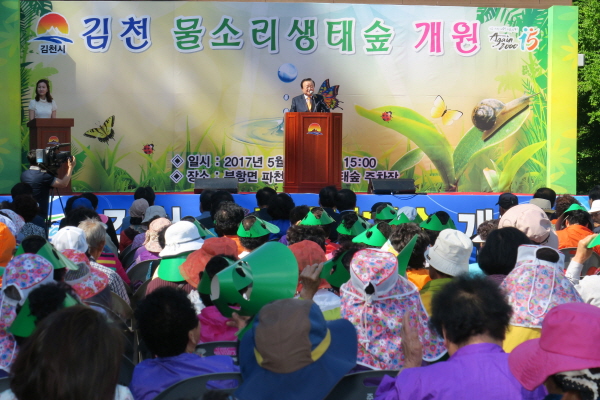 박보생 김천시장은“이번 김천 물소리 생태숲 개원식을 통해 수도산 자연휴양림, 부항댐, 산내들 오토캠핑장 등과 연계한 체류형 휴양벨트 조성 및 숲체험·휴식공간 제공으로 국민들 삶의 질을 향상하고 지역경제 활성화에 도움이 될 것이다”라고 말했다.