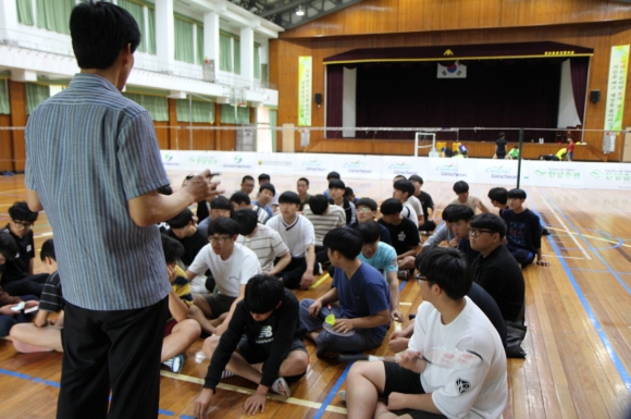 이어진 체육 활동 시간은 4개 조를 이루어 베드민턴, 탁구, 족구 등을 경쟁하면서 같은 팀안에서는 유대감과 결속력을 가지고 상대팀과는 선의의 경쟁을 공정한 룰을 통해 갖는 시간을 겨루며 진행하는 교사가 의도했던 것보다 오히려 더욱 더 활기차고 즐거워하는 모습, 서로를 보살피고 배려하는 모습을 볼 수 있었다.