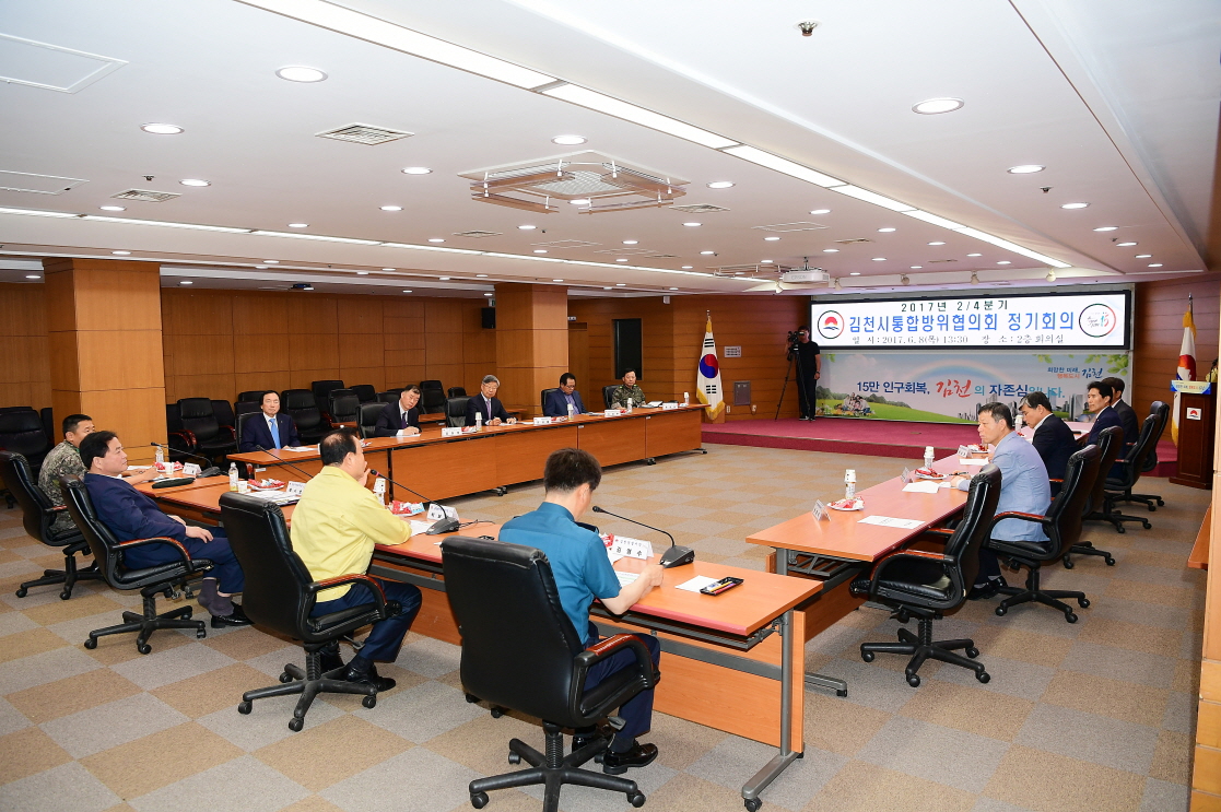 | 김천시는 6월 8일 시청 회의실에서 김천시통합방위협의회의장(박보생 김천시장)과 통합방위협의회위원, 군관계자 등 20여명이 참석한 가운데 김천시통합방위협의회 정기회의를 개최했다.
